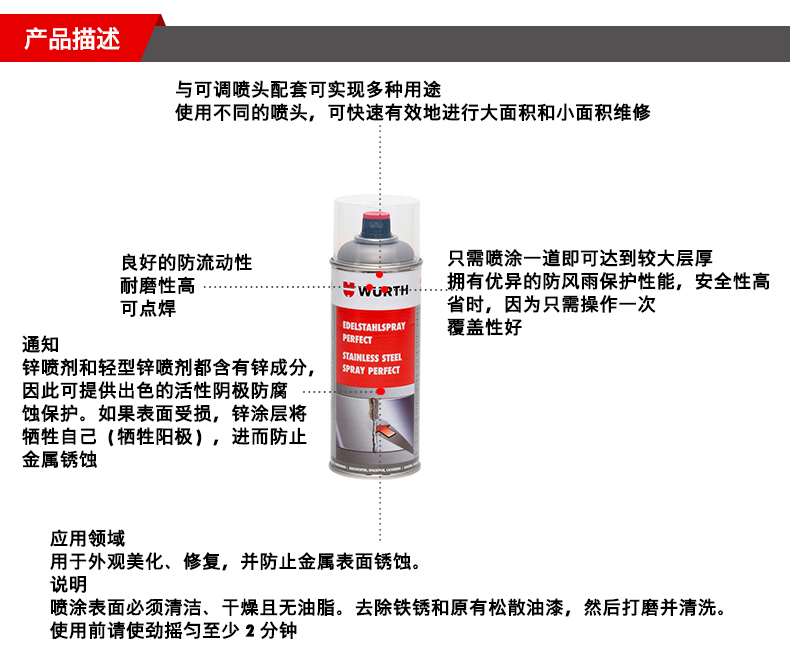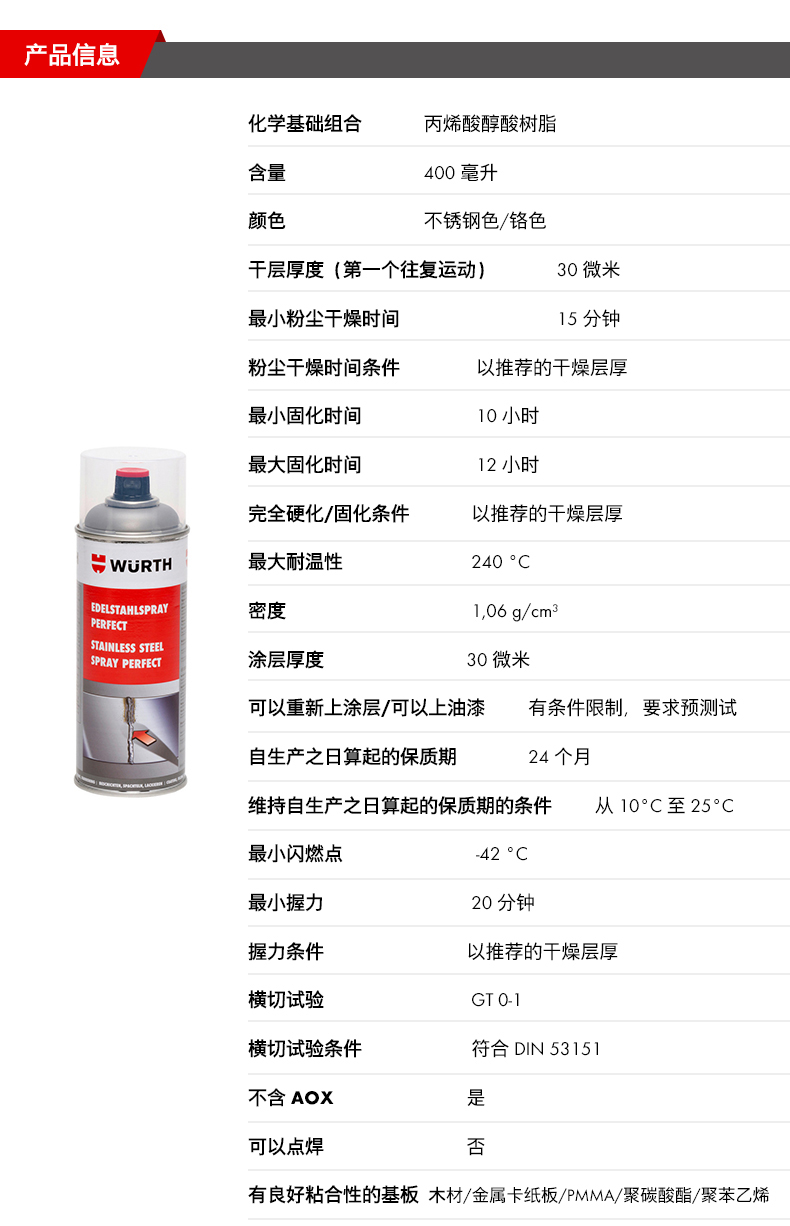 WURTH/伍尔特的涂层材料伍尔特全效金属表面不锈钢喷剂,0893114116,400ML/瓶
