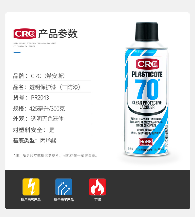 CRC的涂层材料CRC透明保护漆,PR2043,300g/瓶,12瓶/箱