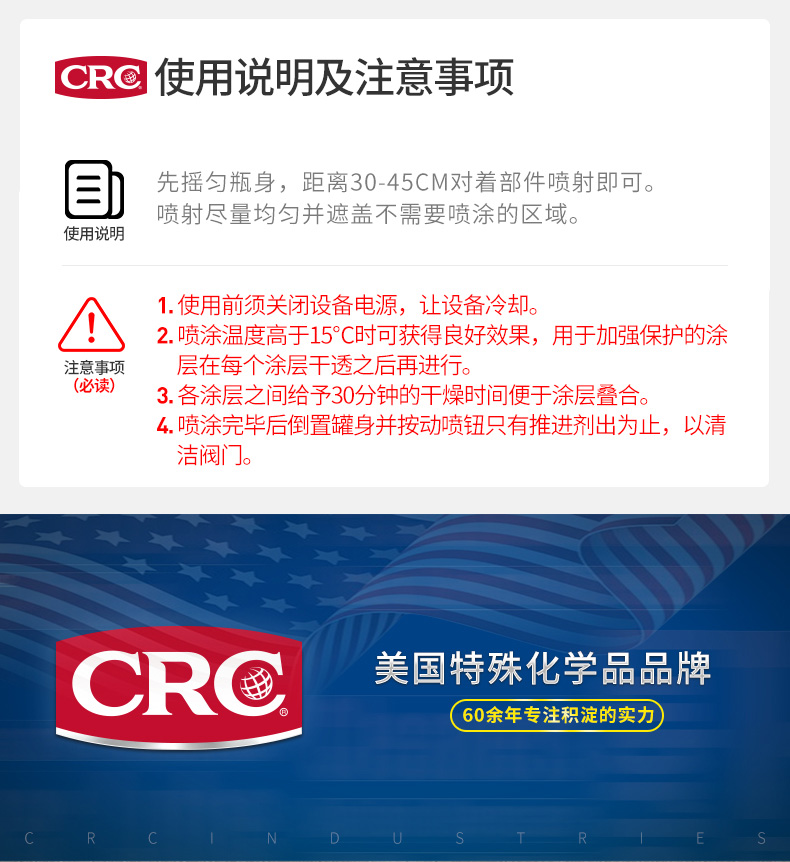 艾逊订货号:H1007226 原始型号:CRC PR2043,300g/瓶,12瓶/箱 品牌:CRC 品牌所属地:中国