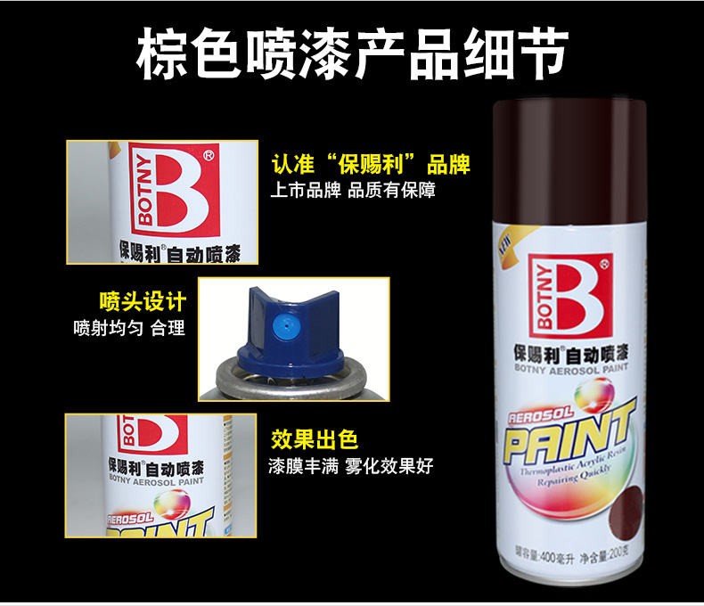 保赐利 自动喷漆,棕色系列,141深棕色,200g/400ml |