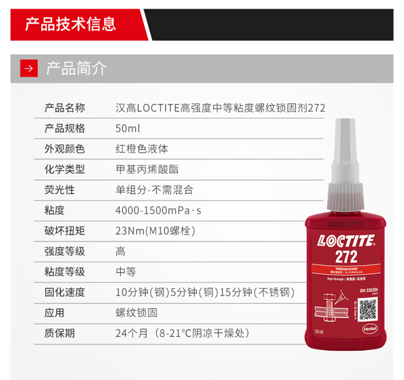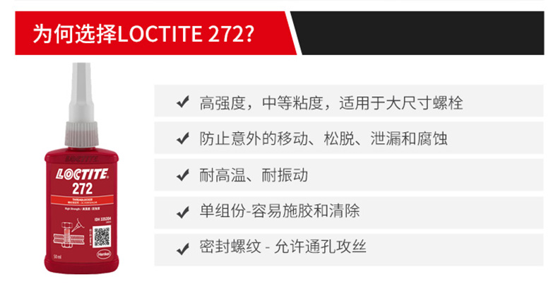 乐泰 螺纹 锁固剂,Loctite 272 高强度 耐高温,50ml |