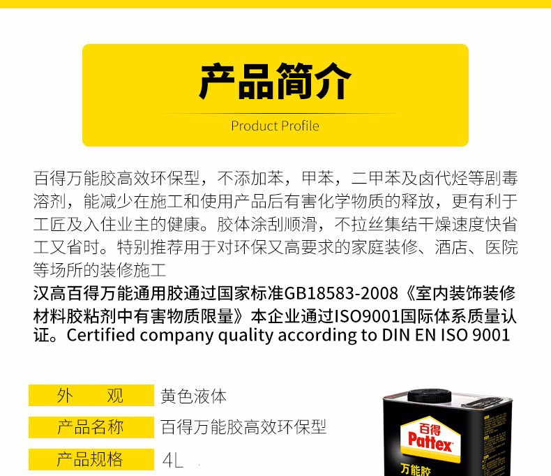 pattex/汉高百得的溶剂基.水基粘合剂汉高百得万能胶,PX4E,4L