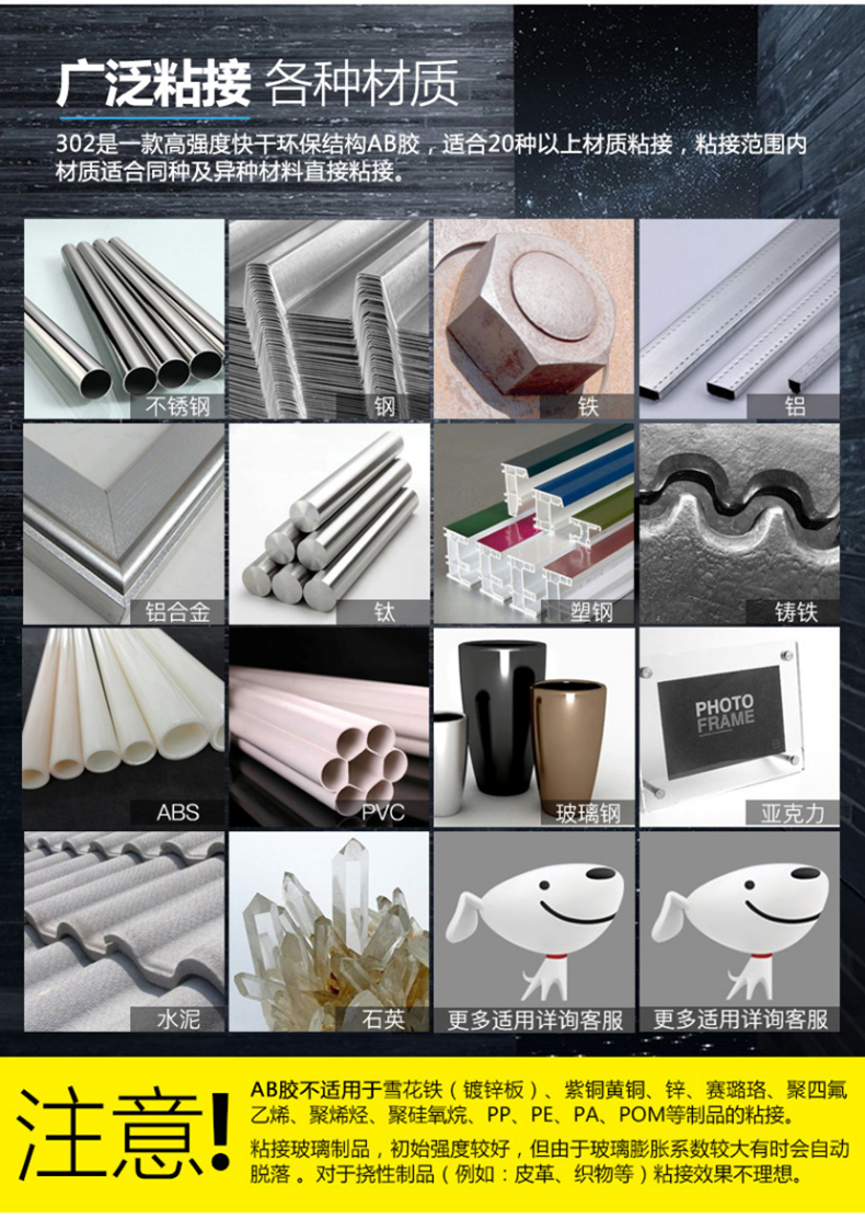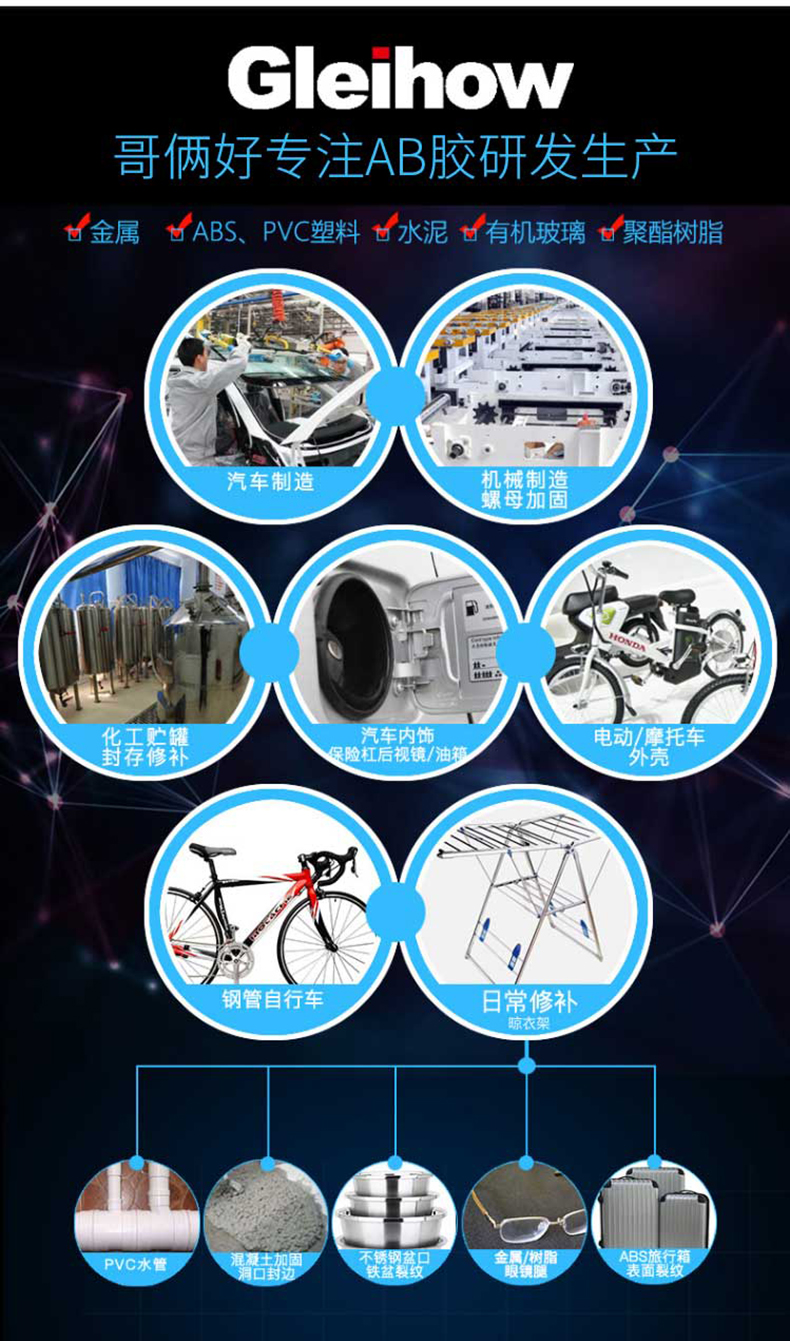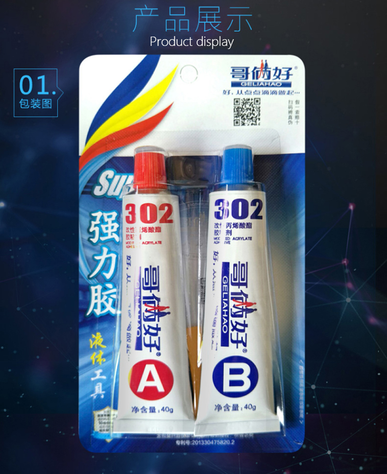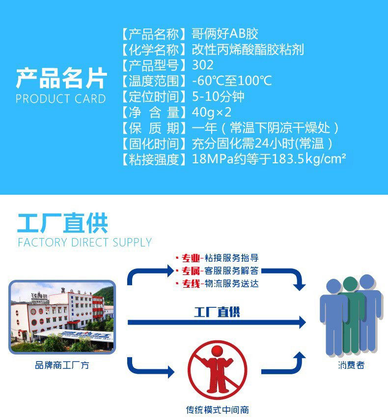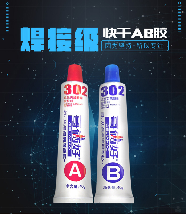 哥俩好牌改性丙烯酸酯胶 (GLH-302)是以甲基丙烯酸酯为主,配以增韧剂、补强剂、稳定剂、引发剂、阻聚剂等,通过先进工艺合成的双组份(A、B)反应型结构胶粘剂。