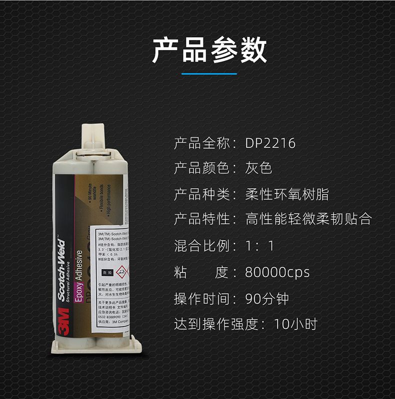 艾逊订货号:H1008531 原始型号:3M DP2216,43ML/支 品牌:3M 品牌所属地:中国