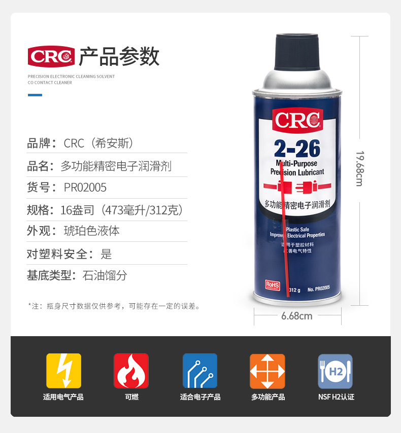艾逊订货号:H1008734 原始型号:CRC 2-26,PR02005 品牌:CRC 品牌所属地:中国