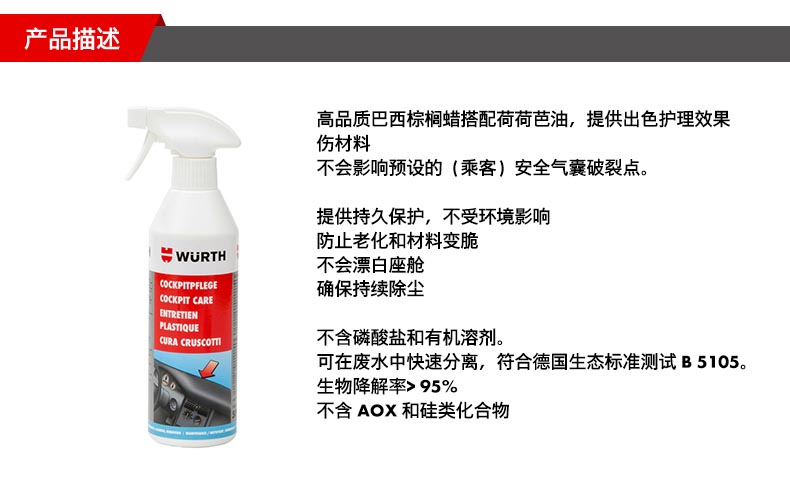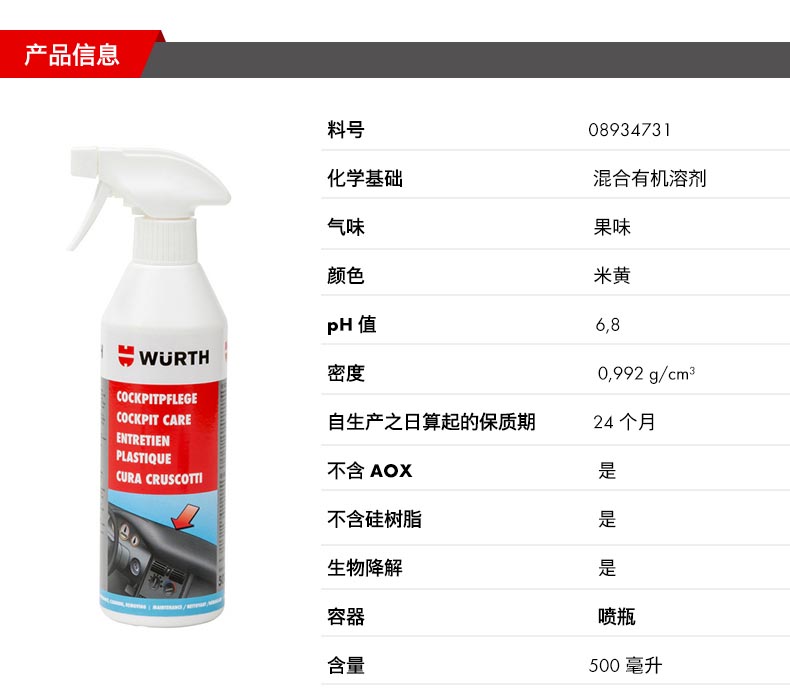 WURTH/伍尔特的养护保护剂伍尔特座舱保养剂,08934731,500ML/瓶