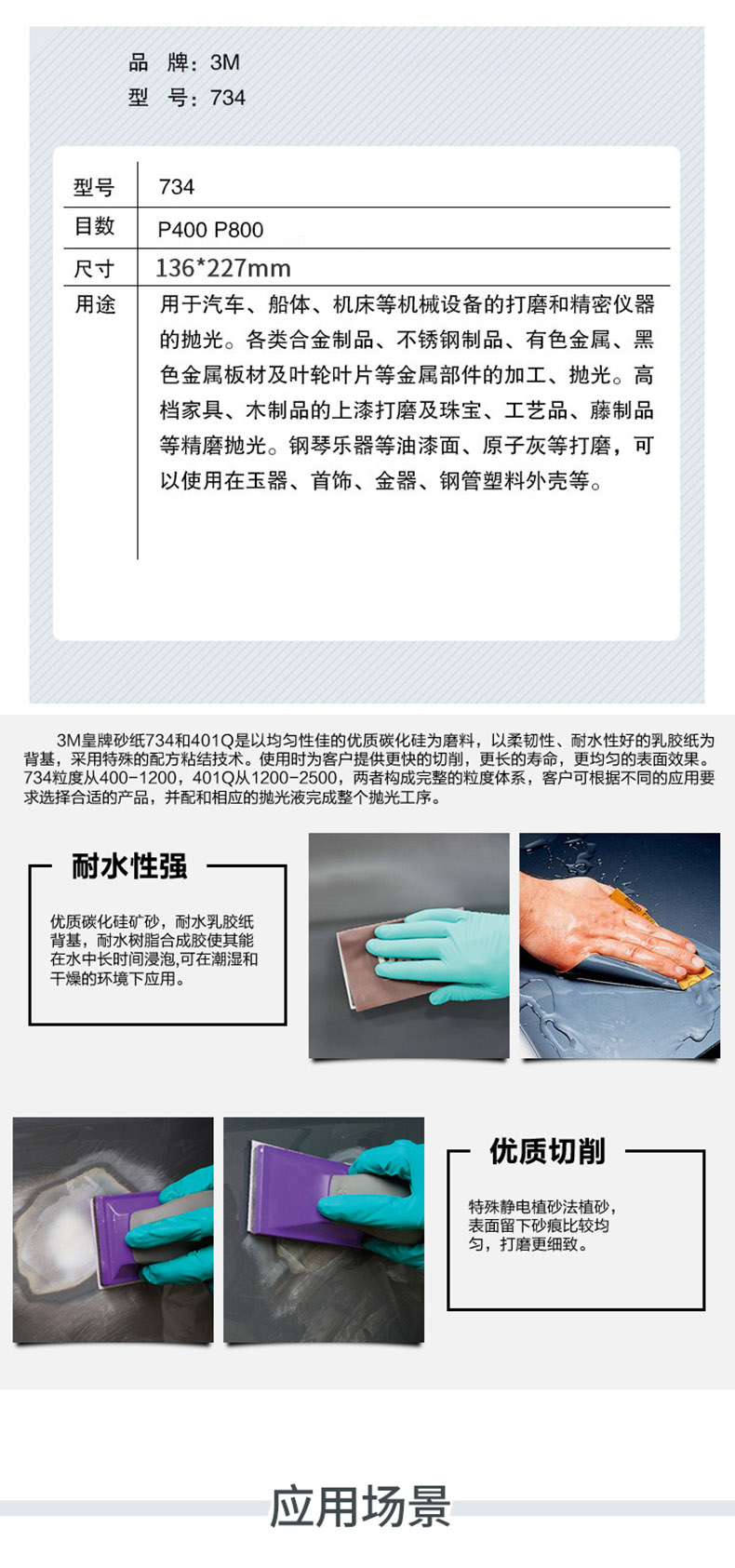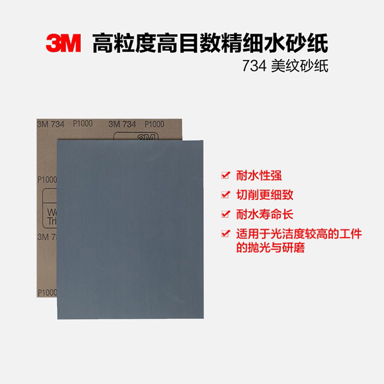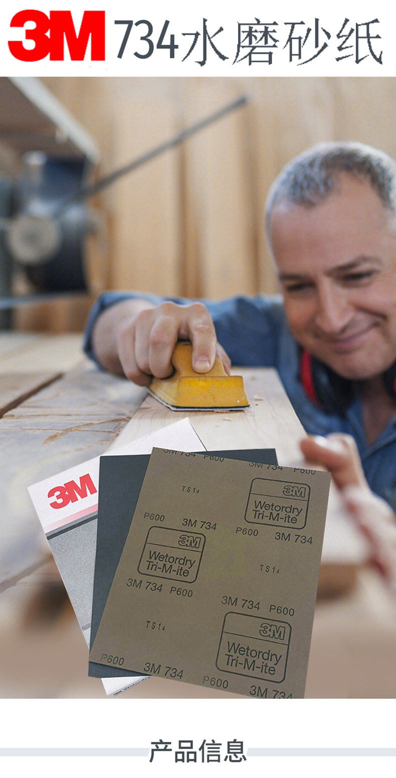 艾逊订货号:C1025020 原始型号:3M品牌734水砂纸 600#,干湿两用纸基 230*280mm,50张/包 品牌:3M 品牌所属地:美国
