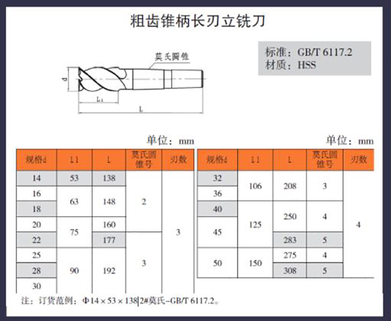 上工的立铣刀上工锥柄立铣刀,(莫氏锥柄),Φ36