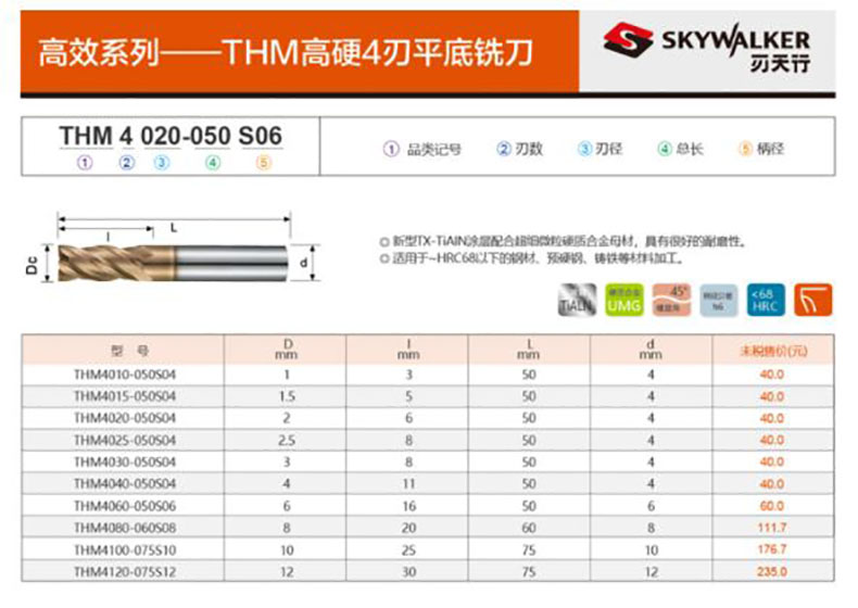 刃天行的立铣刀刃天行skywalker铣刀,THM4080-060S08