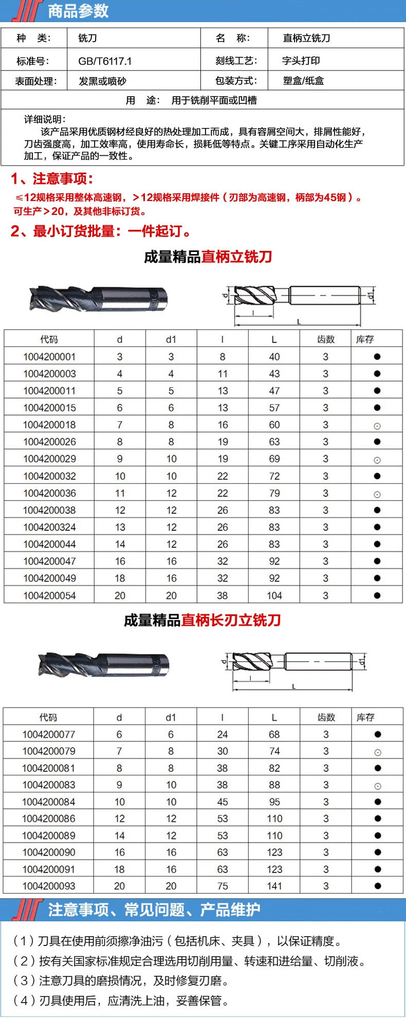原始型号:成量 立铣刀,直柄粗齿型,φ6