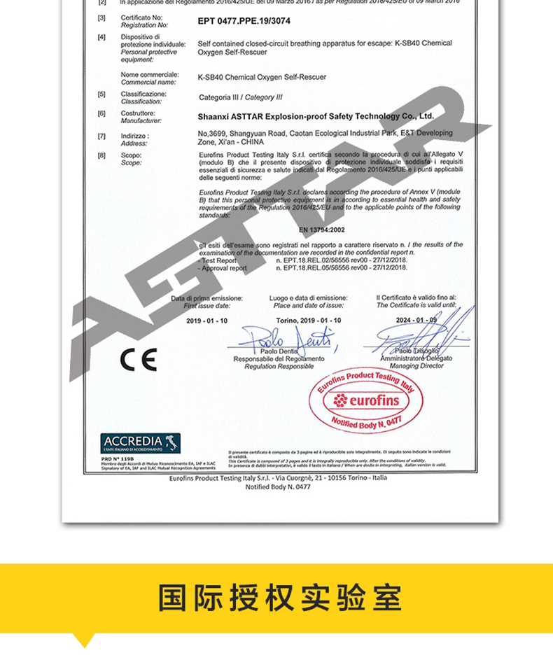 斯达ASTTAR 隔绝式化学氧自救器,K-SB50,CE认证,单位:个 |