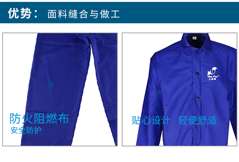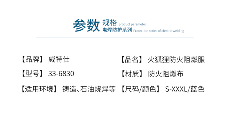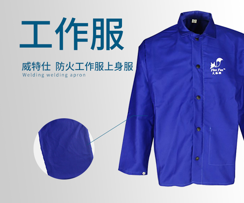 威特仕 焊接防护服,33-6830-XXXXL,火狐狸蓝色上身焊服 |