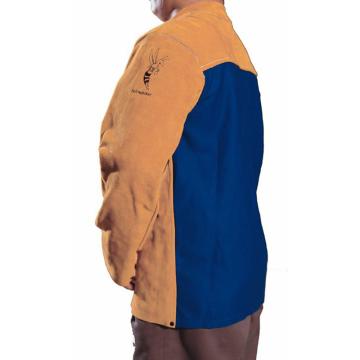 友盟的焊接防护服友盟焊接防护服,AP-3060-M,金黄色皮配蓝色阻燃背布焊接服