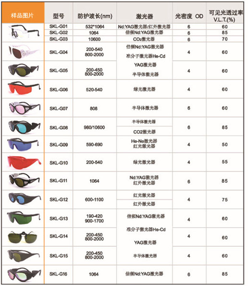 三克的激光防护眼镜三克激光防护眼镜,防护波长1064NM,SKL-GO2
