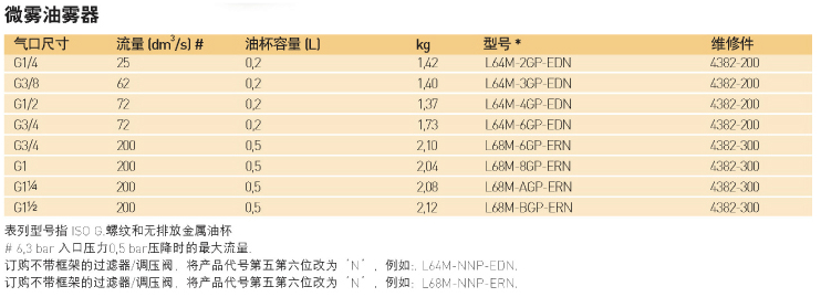 艾逊订货号:B1007174 原始型号:诺冠Norgren 油雾器,L64M-NNP-EDN 品牌:Norgren/诺冠 品牌所属地:中国