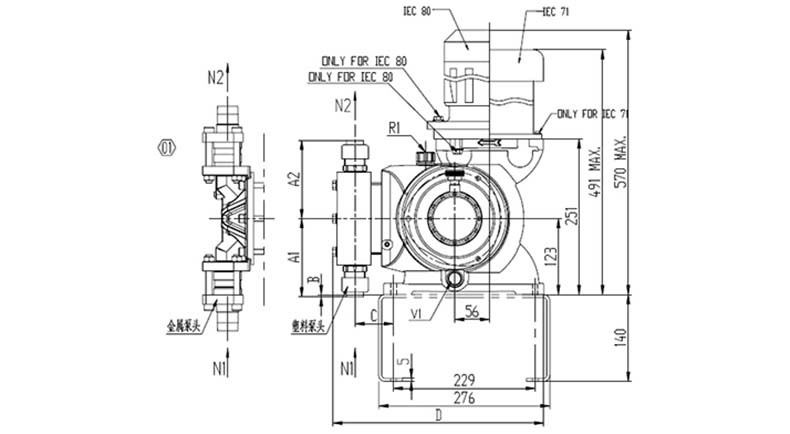 米顿罗/MILTON ROY的计量泵米顿罗GB系列机械隔膜计量泵,GB0500PP4MNN,PVC液力端,NPT螺纹接口1"F,750W,380V