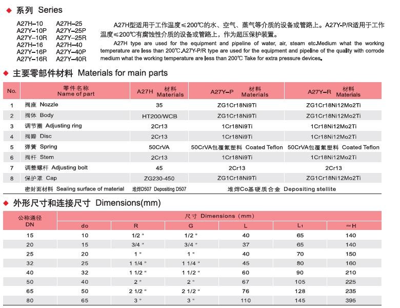 YOY/永一的安全阀永一弹簧式外螺纹安全阀(铸铁)A27H-10/16,DN25(下单请注明介质温度及安全阀整定压力)