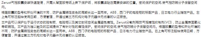 Zerust 气相防锈胶囊VC 1-1,防护容积0.12m3,防护半径0.30m,防护周期1年,50个/箱,带背胶 |