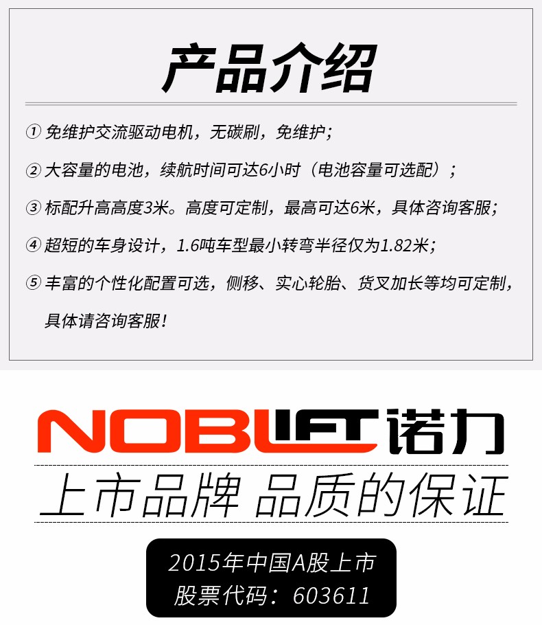 诺力 Q系列四支点平衡重电动叉车,额定载荷(T):1.6 锂电池48V/200AH 充电机48V/100A,FE4P16Q锂电 |