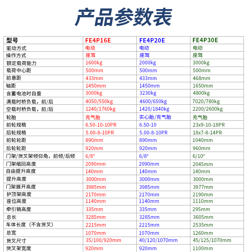 诺力 E系列平衡重式电动叉车,额载(T):3 半交进口电控,FE4P30E |