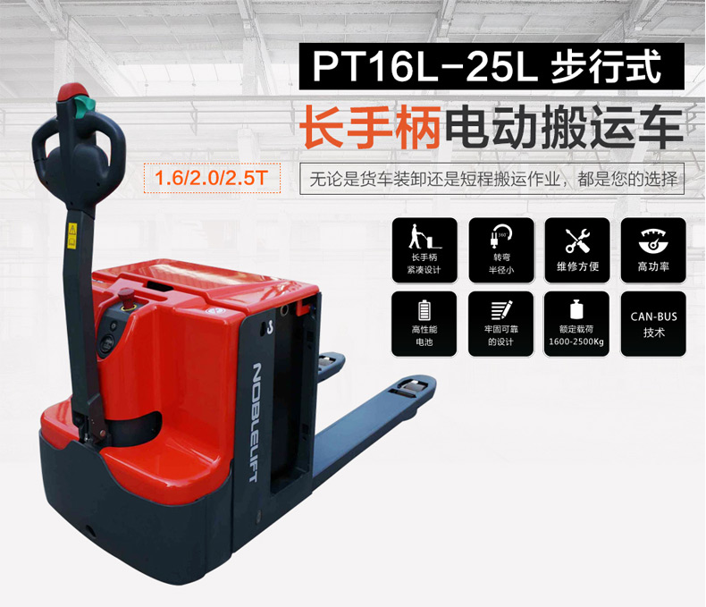 NoBlift/诺力的电动液压搬运车诺力PT系列长手柄全电动托盘搬运车,额载(T):1.6货叉(mm):685*1220165AH/AC,PT16L680*1220