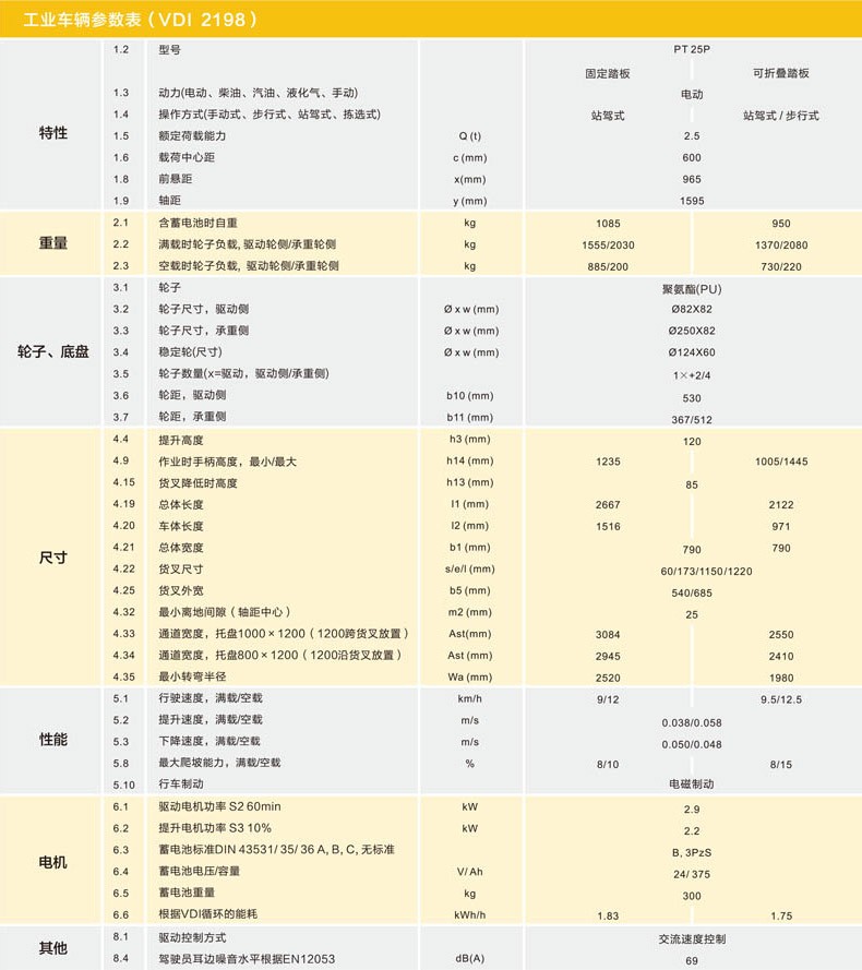 艾逊订货号:A1043747 原始型号:诺力 PT系列全电动高速搬运车,额载(T):2.5 货叉(mm):540*1150 375AH/AC,PT 25P Fixed 540*1150 品牌:NoBlift/诺力 品牌所属地:中国