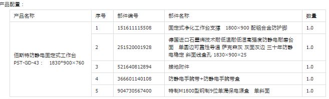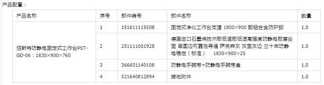 艾逊订货号:A1046626 原始型号:佰斯特 防静电固定式工作台,(含电源线盒)1530*900×760,PST-GD-41,不含安装费 品牌:佰斯特 品牌所属地:中国