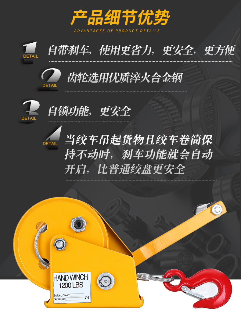 山崎起重的葫芦山崎起重手动绞盘,1200磅轴承款(20米绳)
