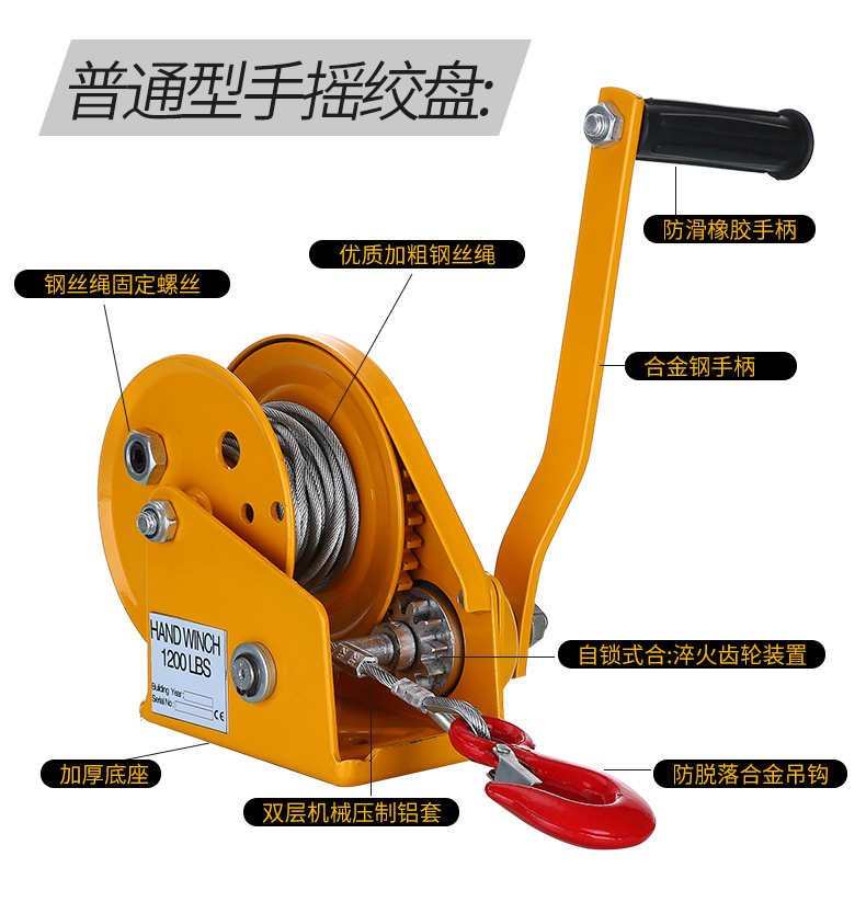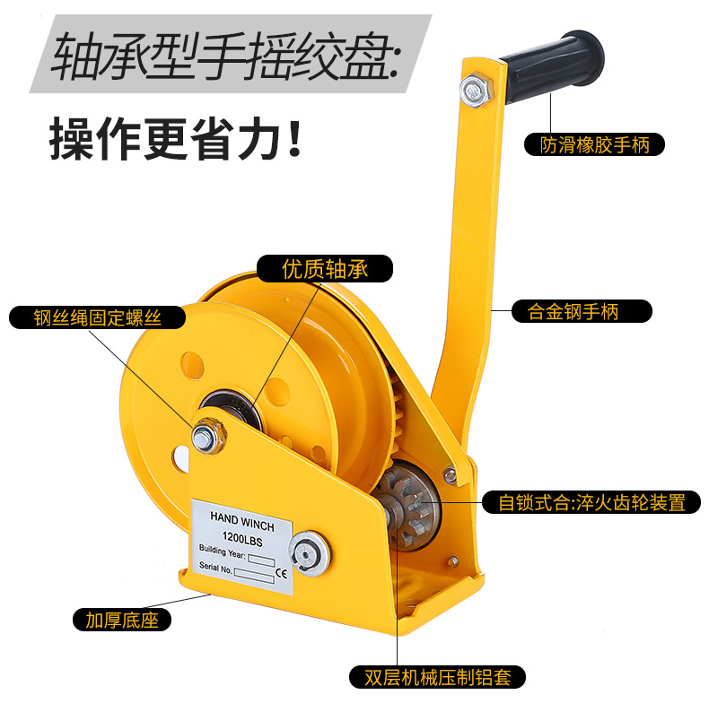 艾逊订货号:A1047179 原始型号:山崎起重 手动绞盘,1200磅轴承款(20米绳) 品牌:山崎起重 品牌所属地:中国
