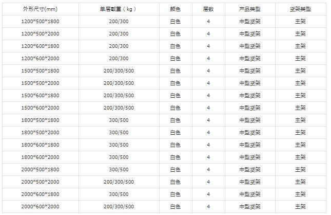 至腾 中型货架主架,尺寸(长*宽*高mm):2000*500*1800(四层搁板,300KG/层,白色),安装费另询 |