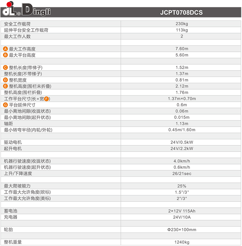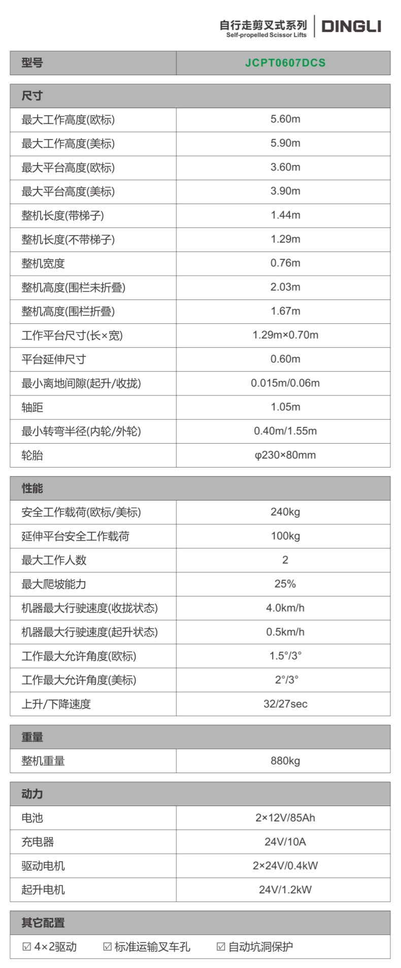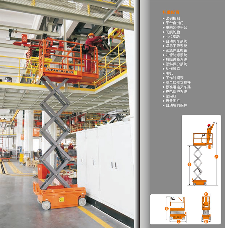 鼎力 自行走剪叉式高空作业平台,工作载荷(kg):450 工作高度(m):10 直流电机驱动,JCPT1012DC |