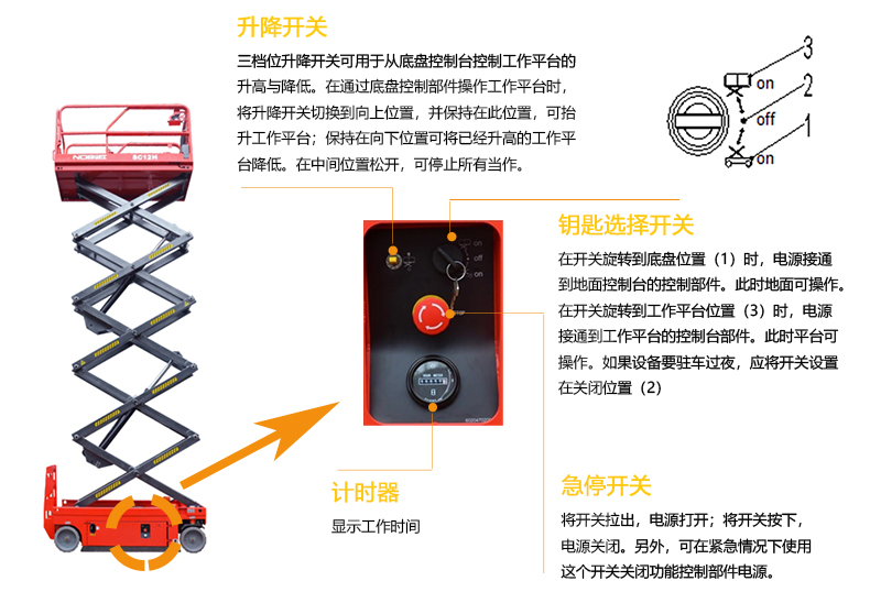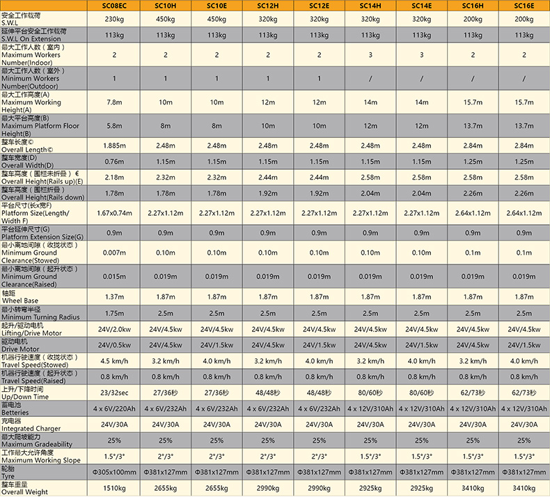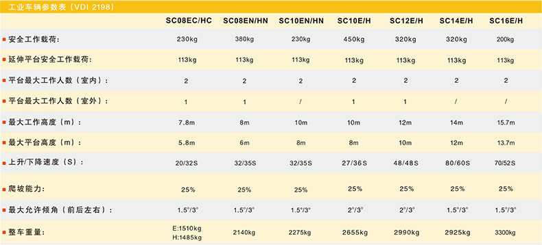 艾逊订货号:A1050294 原始型号:诺力 自行走剪叉式高空作业平台,额载(kg):320 平台高度(m):10 平台尺寸(m):2.27*1.12,SC12E 品牌:NoBlift/诺力 品牌所属地:中国