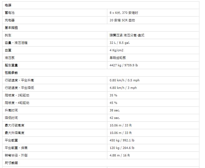 JLG的剪叉式高空作业平台JLGLE系列电动剪式高空作业平台,平台最大高度(m):10.06额定载重(kg):450,3369LE