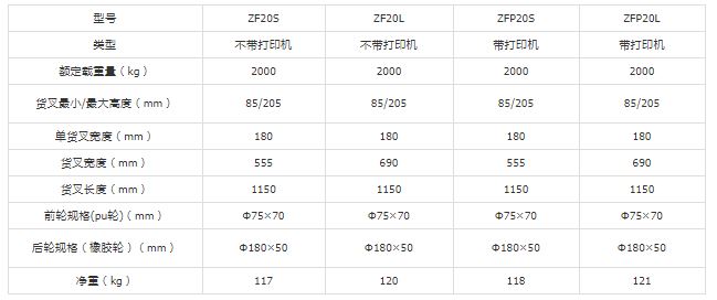 虎力 不锈钢型称重搬运车,载重(T):2 货叉尺寸(mm):555*1150,ZFS20S |