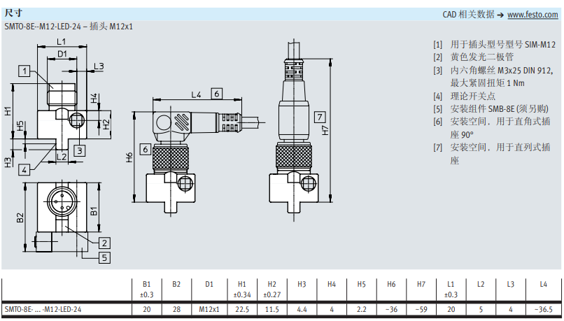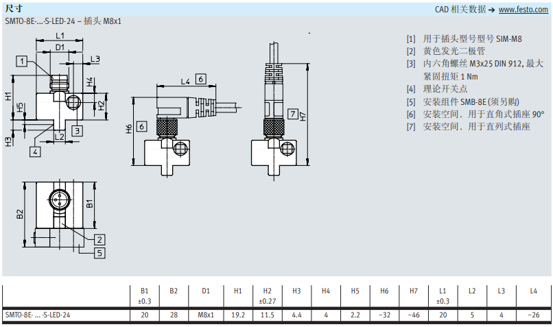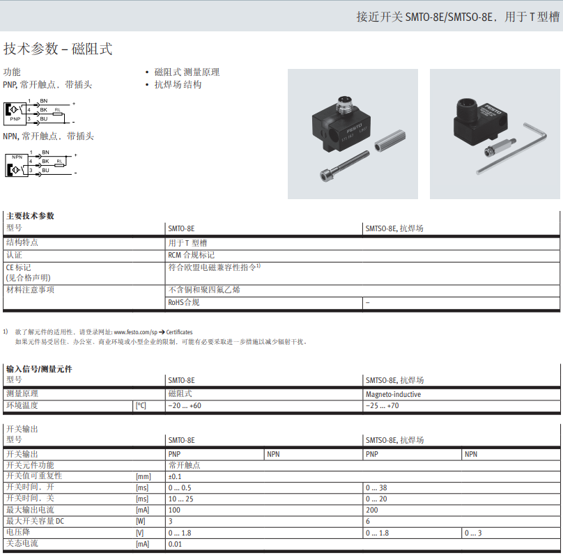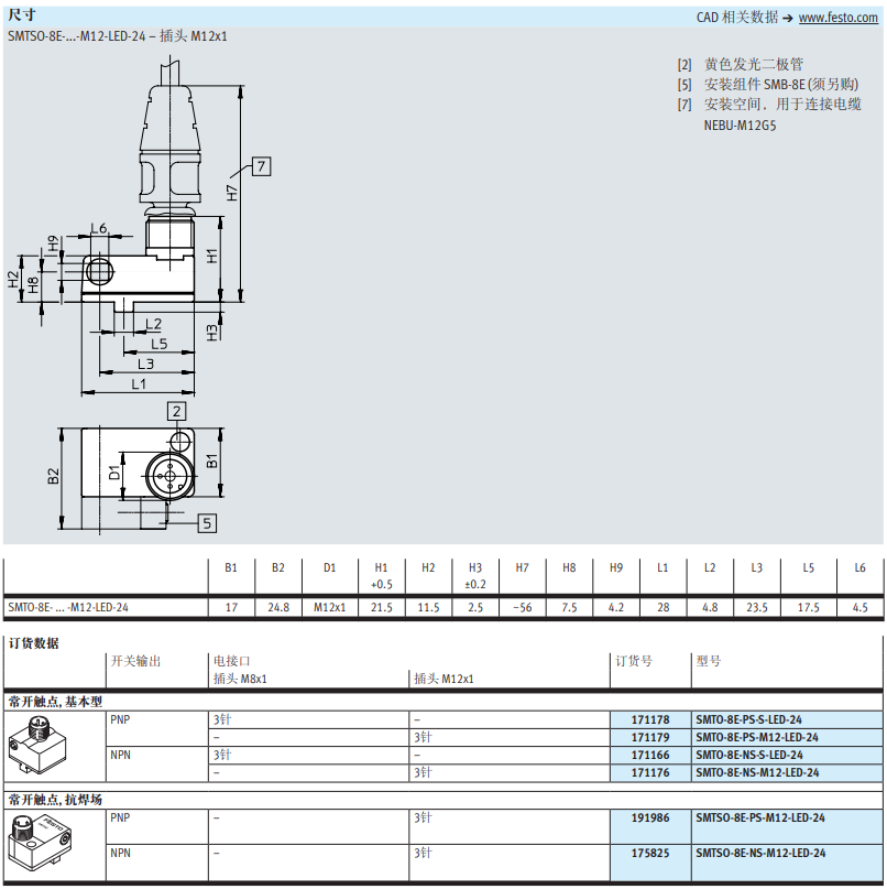 Festo/费斯托的气缸附件费斯托FESTO气缸磁性行程开关SMTSO系列,SMTSO-8E-PS-M12-LED-24,191986