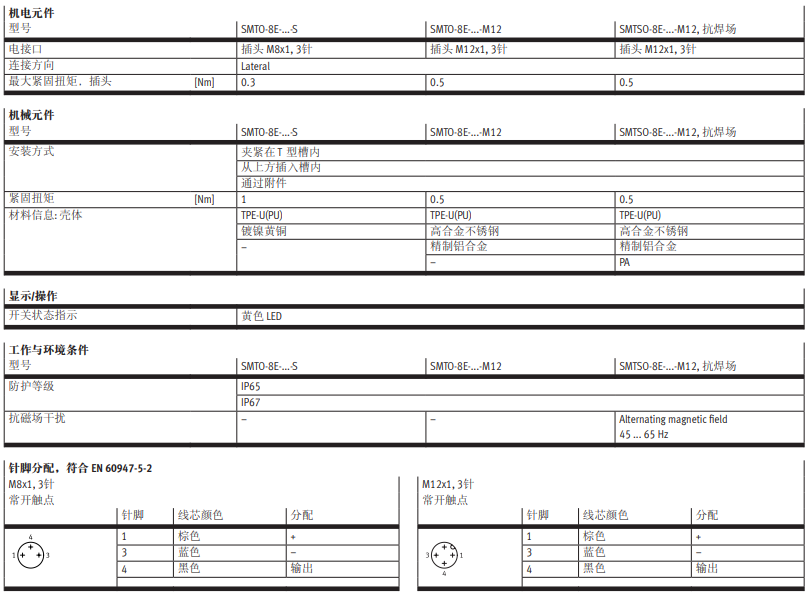 艾逊订货号:B1052258 原始型号:费斯托FESTO 气缸磁性行程开关SMTSO系列,SMTSO-8E-PS-M12-LED-24,191986 品牌:Festo/费斯托 品牌所属地:中国