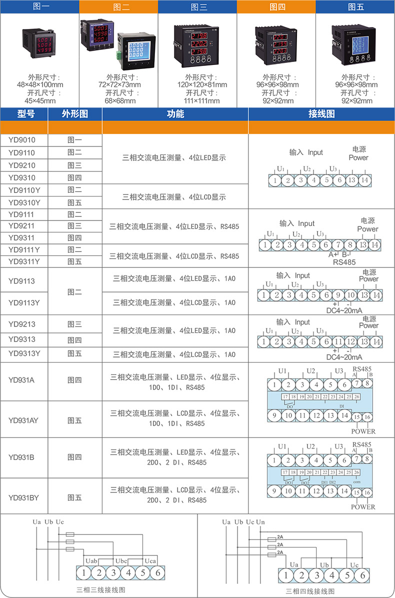 YADA/雅达的通用测试附件雅达/YADA三相交流电压数显表,YD9313Y