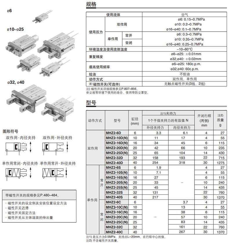 SMC 平行开闭型气爪,薄型,短行程,带磁性开关,MHF2-8D-M9NL |