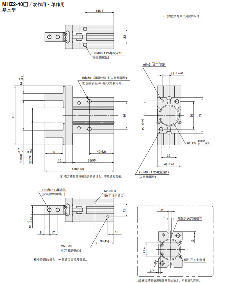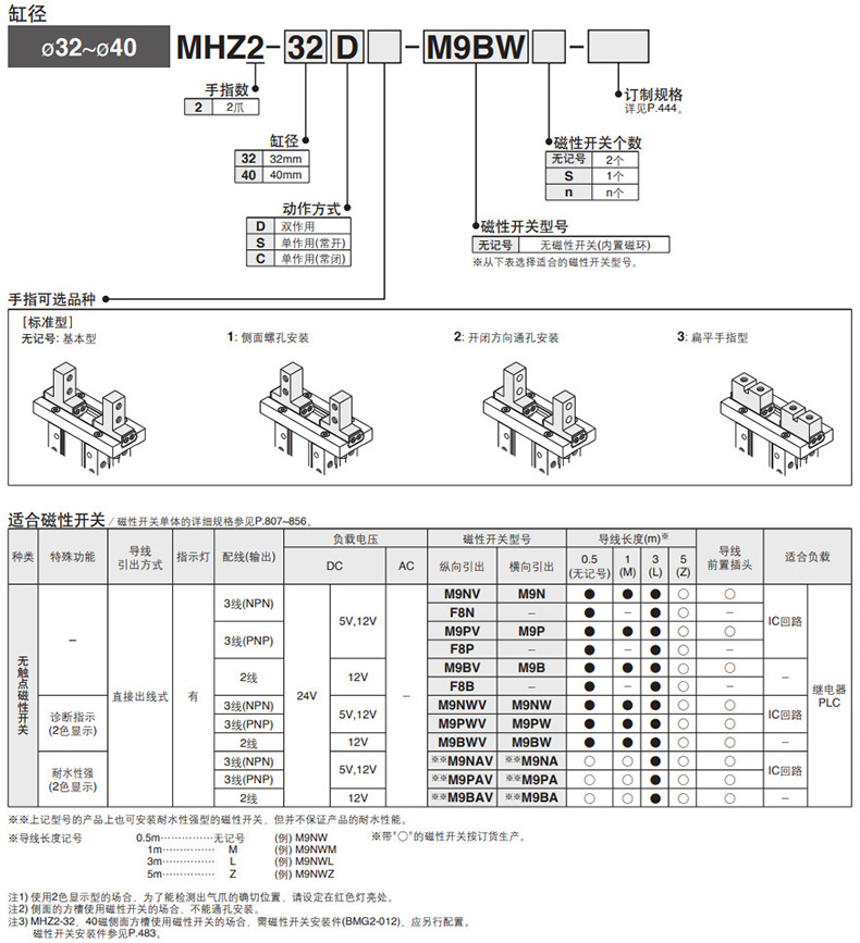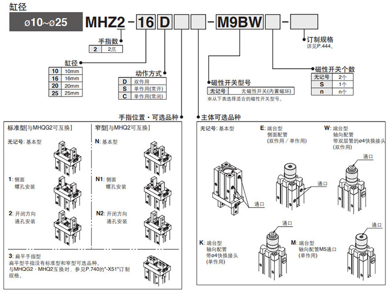 SMC 平行开闭型气爪,双作用,通孔安装,带磁性开关,MHZ2-16D2-M9PL |