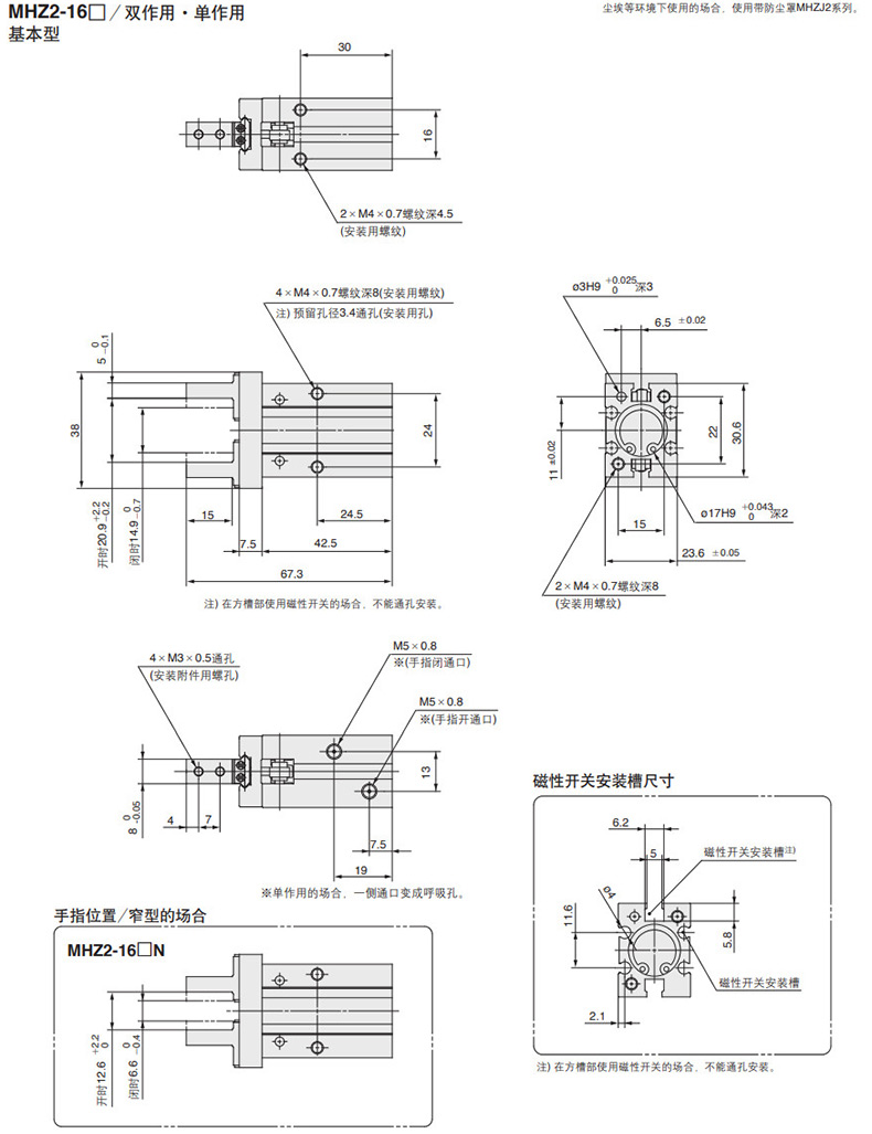 SMC 平行开闭型气爪,薄型,短行程,带磁性开关,MHF2-20D-M9NL |