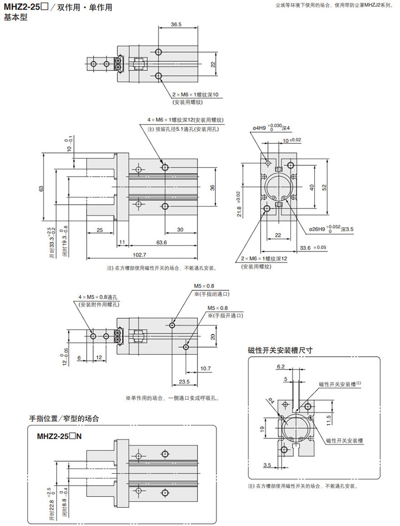 SMC 平行开闭型气爪,双作用,带磁性开关,MHZ2-25D-M9NL |
