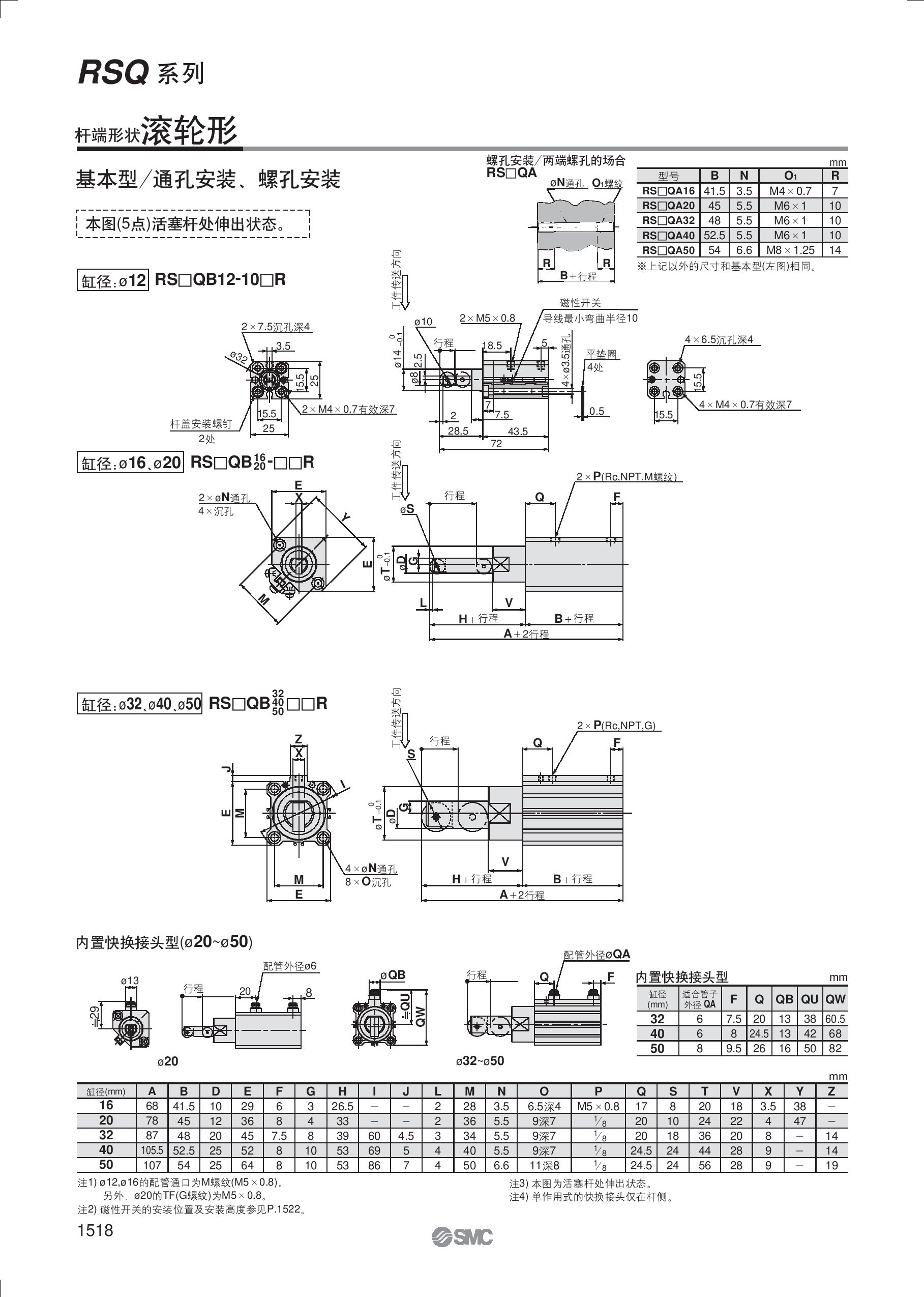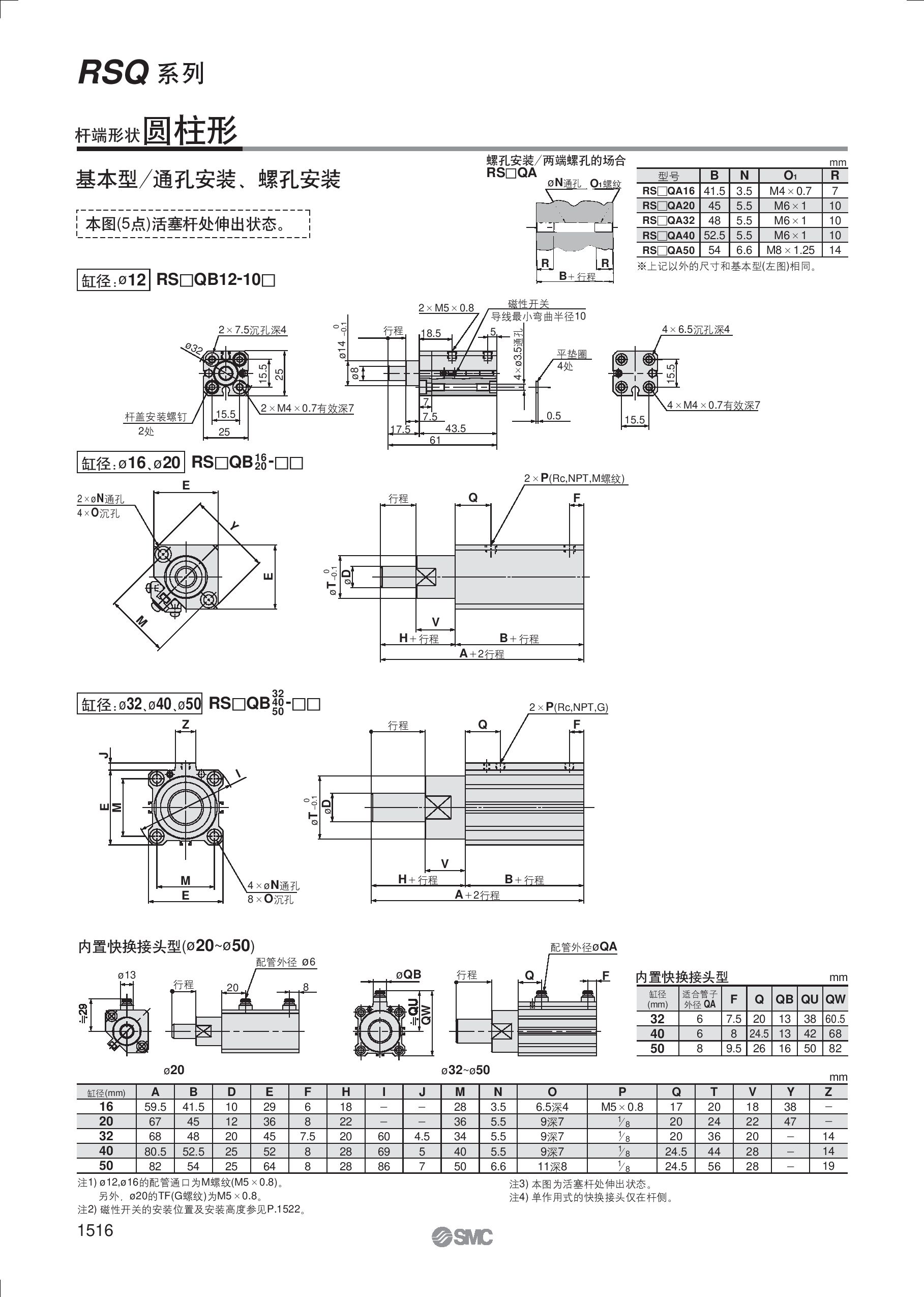 SMC的阻挡气缸SMC止动气缸,RSQA20-15DZ