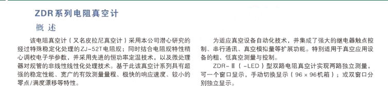 正华电子 电阻真空计,ZDR-Ⅱ-LED 大气~10e-1Pa 2路测量 无控制 带ZJ-52T两只 |