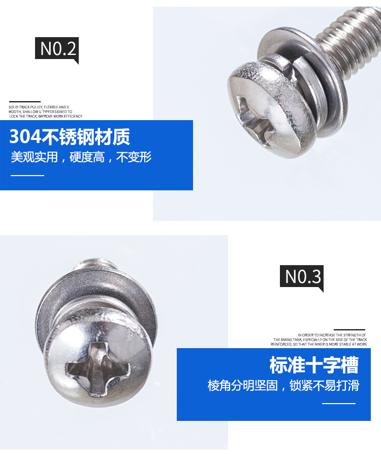东明 GB9074.4十字槽盘头螺钉、弹簧垫圈和平垫,M3-0.5X14,不锈钢304,1500个/盒 |