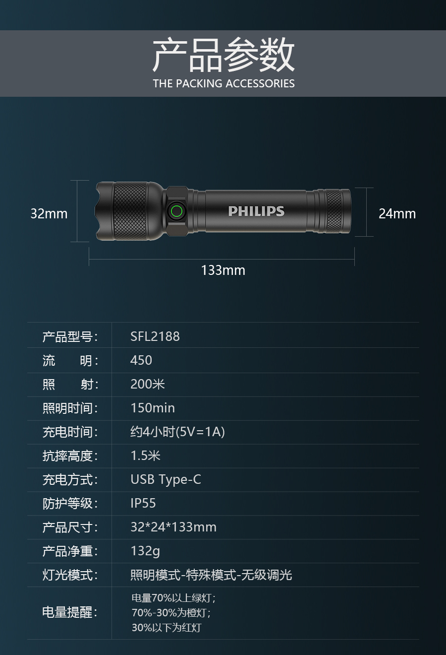 PHILIPS/飞利浦的手电筒手电筒充电、照射300米以上