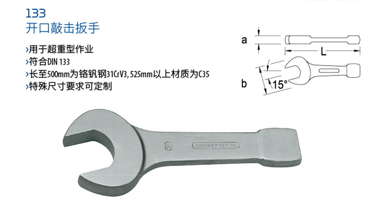 艾逊订货号:D1013011 原始型号:GEDORE 吉多瑞 75mm开口敲击扳手,6401230 品牌:GEDORE/吉多瑞 品牌所属地: