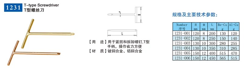 渤防 防爆T型螺丝刀,1231-006 12*450mm 铝青铜 |