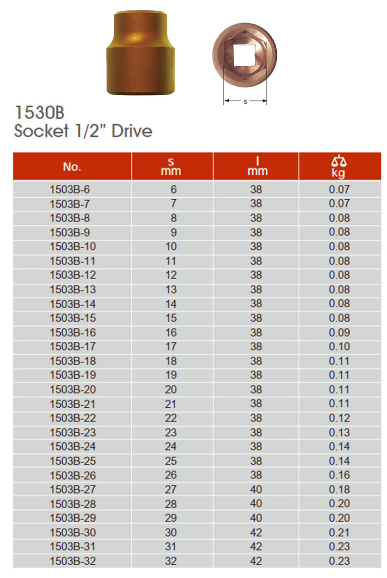 卡索 防爆套筒,1/2"系列 28mm 铍青铜,1503B-28B |
