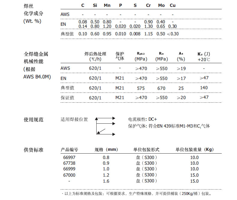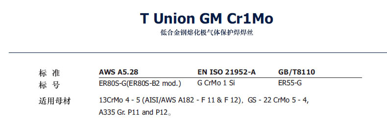 伯合乐(苏州产)T Union GT Mo(ER80S-G/ER70S-A1)低合金钢钨极氩弧焊丝 直径2.4mm,5公斤/包 |