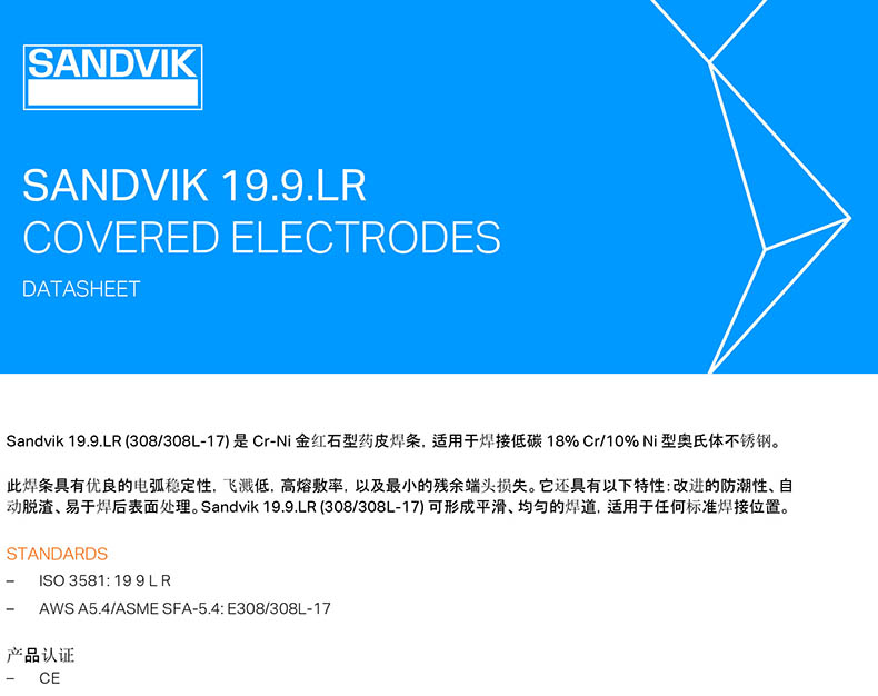 瑞典AVESTA 2507/P100(E2594-16)双相不锈钢焊条 直径4.0mm,4.5公斤/包 |